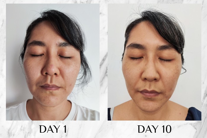 After my first use, I noticed my skin felt slightly smoother, and I was eager to continue using the product. Over the 10 days, I observed significant improvements – my skin looked and felt healthier, with a noticeable reduction in blemishes, less redness, and fewer bumps.