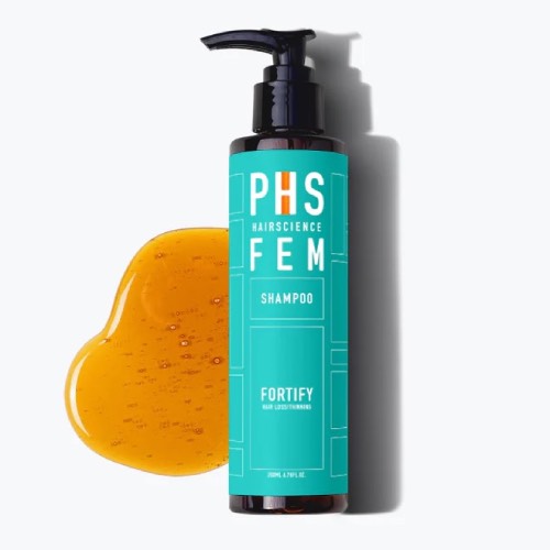 That’s why PHS Hairscience created the FEM Fortify Shampoo, specially made for women. FEM stands for “female,” and this shampoo is formulated to tackle thinning hair and boost visible hair density.