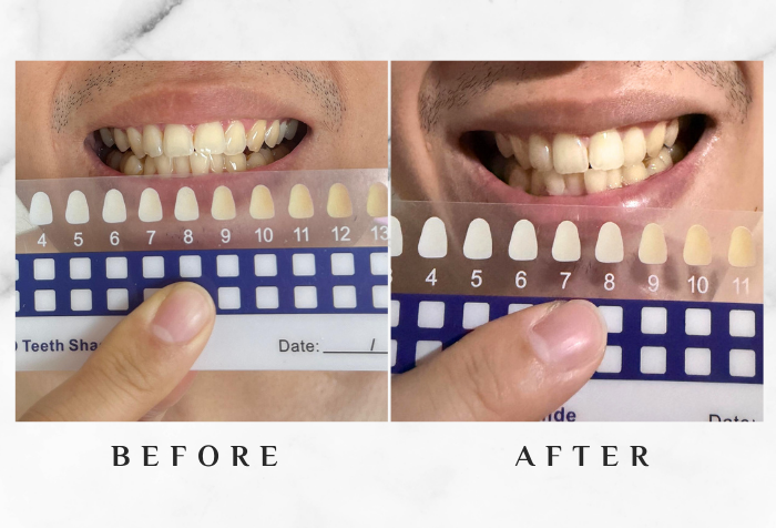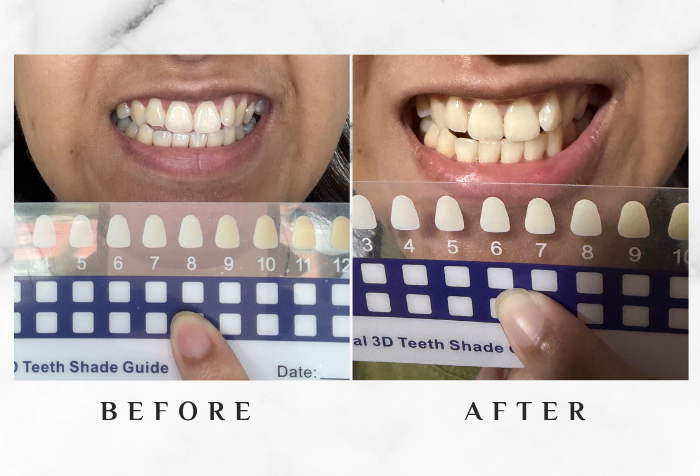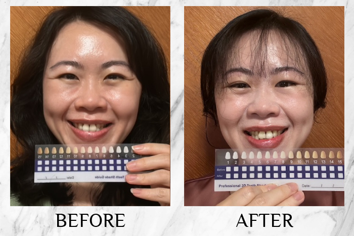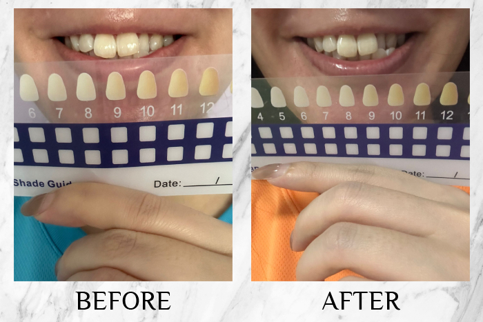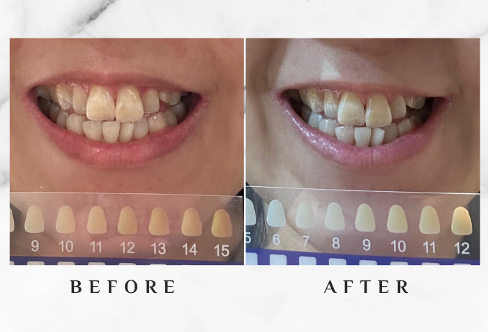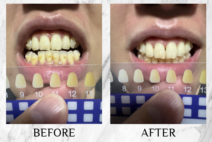 The whitening was subtle at first, but the effect increased with continued use, and I felt my teeth were whiter and stains were less visible. In just three days, my teeth appeared noticeably brighter, moving up two colour grades on the whitening strip—from eight down to six.