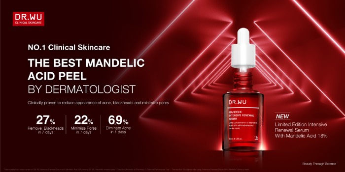 One of their standout products, the DR.WU Mandelik Intensive Renewal Serum with 18% Mandelic Acid, exemplifies the brand’s commitment to results-driven skincare.