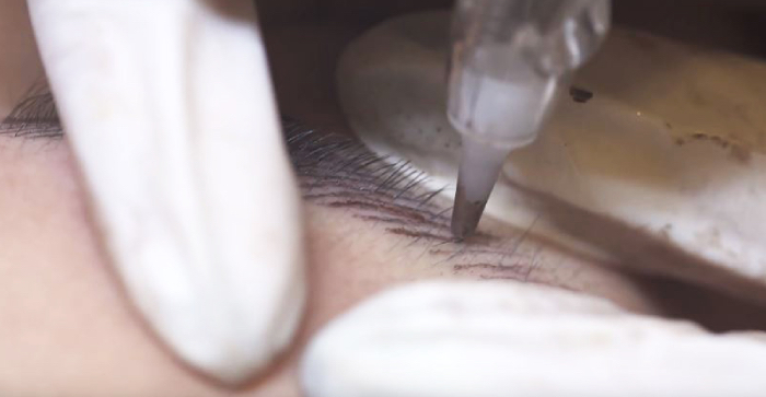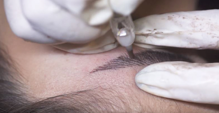 Traditional embroidery blades make small cuts into the skin in which they deliver colour pigments to achieve the semi-permanent effect, so you might imagine the swelling and bleeding that people generally experience after that.