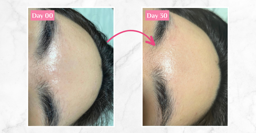 After two weeks, I noticed that the fine lines around my forehead and eye area have considerably improved. I also observed some minor improvements in my smile lines, the wrinkles under my eyes, and the shallow expression lines between my forehead.