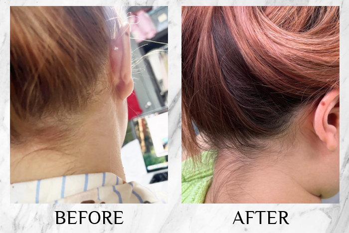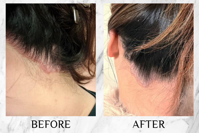 Redness around the scalp and hairline has visibly reduced