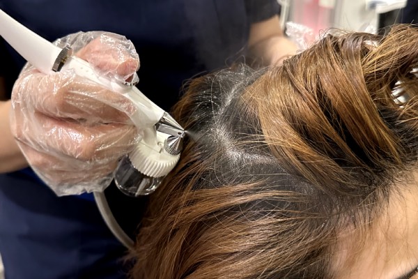 Using a NanoMist Spray, a Customised Treatment Essence is sprayed on to improve your scalp health, stimulating hair follicles and encouraging healthier, fuller hair over time.