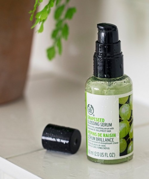 Body Shop Grapeseed Glossing Hair Serum retails for S$23 from Body Shop Official Website.