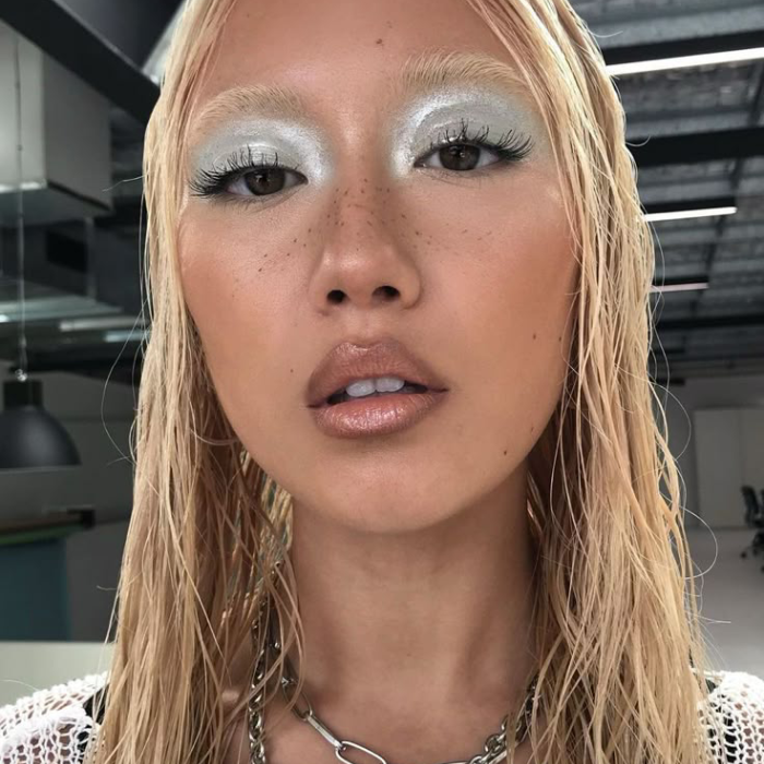 Add silver accents to your eyes and inner corners for a subtle, daily look, or go all out with electric blue or lilac mascara, eyeliner, and eyeshadow. Balance it out with long false lashes and free-flowing lines, and unleash your full creativity.