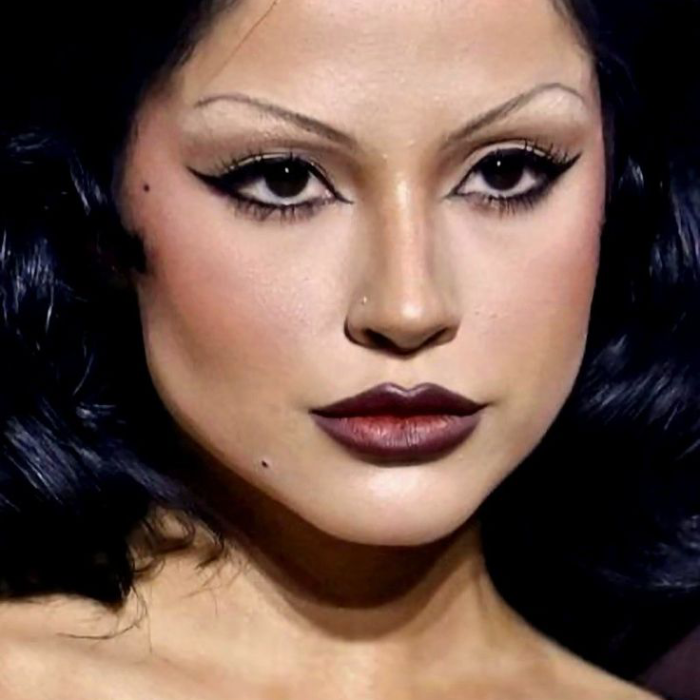 Stick to a matte or satin lip in bold berry shades, and let your eyeliner emphasise your fierce cat-like eyes—sharp enough to kill and high enough to touch the heavens.