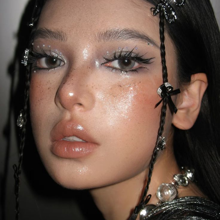 Overload on glitters, shimmer, and shifting highlights all over your face and body.