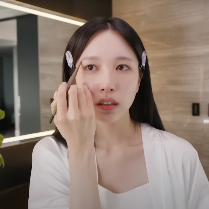 To stay consistent with her natural makeup for the day, Mina uses the ENTROPY Tough Brow Sculpture in Walnut (S$19.66) to fill in and extend the tail ends of her brows. Subtly shaping her brows, the result is a fluffy, cute and airy brow that perfectly fits Mina’s serene demeanour.