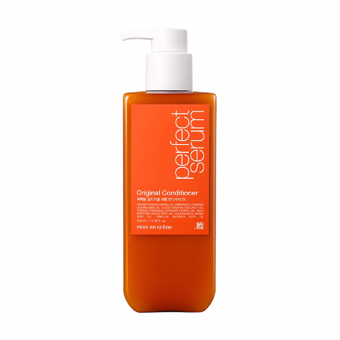 The MISE-EN-SCÈNE Perfect Serum Original Conditioner is packed with the same nourishing ingredients as the popular serum.?It leaves your hair feeling incredibly soft,?even after blow-drying.