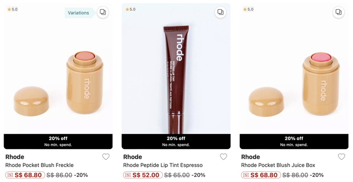 Rhode is offering a generous 20% discount on their entire collection, no minimum spend required.