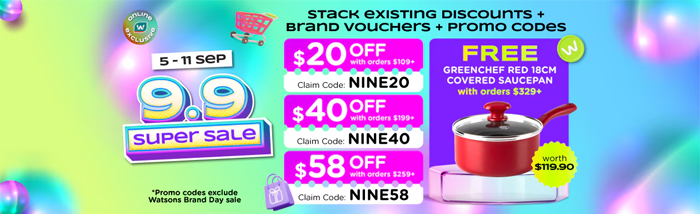 Get ready for Watsons’ incredible 9.9 super sale! From 5 to 11 September, enjoy amazing discounts and deals. Don’t miss their members’ hour on 5, 9 and 11 September from midnight to 3am for a promo code worth up to S$72.