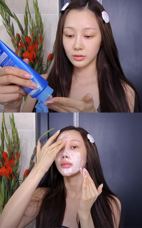 The rich foam gently lifts away impurities and traces of makeup without stripping the skin, leaving her complexion feeling fresh and comfortable. It’s a simple yet effective first step that sets the tone for her effortless “day off” beauty routine.