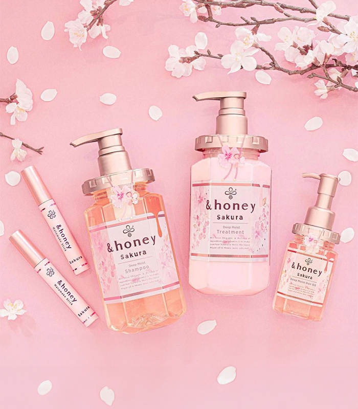 - &Honey Sakura Shampoo, 440ml (S$20): This gentle shampoo has a delightful sakura scent and leaves hair soft, smooth, and nourished.