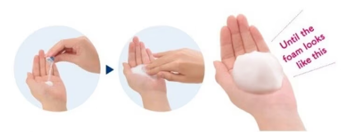 Simply empty one capsule of the powder wash onto your palm, add a small amount of water, and lather with your fingers until bubbles form. Then, rinse it off.