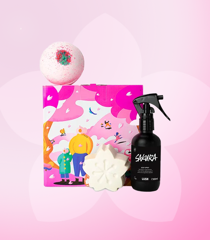 LUSH’s Sakura collection captures the essence of cherry blossoms with uplifting scents of jasmine, mimosa, and citrus.