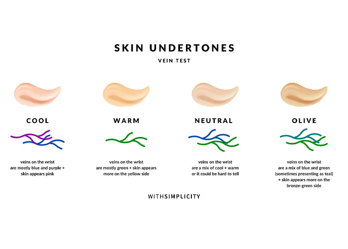 If they appear blue or purple, you’re likely cool-toned. If they look green, you’re probably warm-toned. If it’s hard to tell or seems like a mix, you might be neutral.