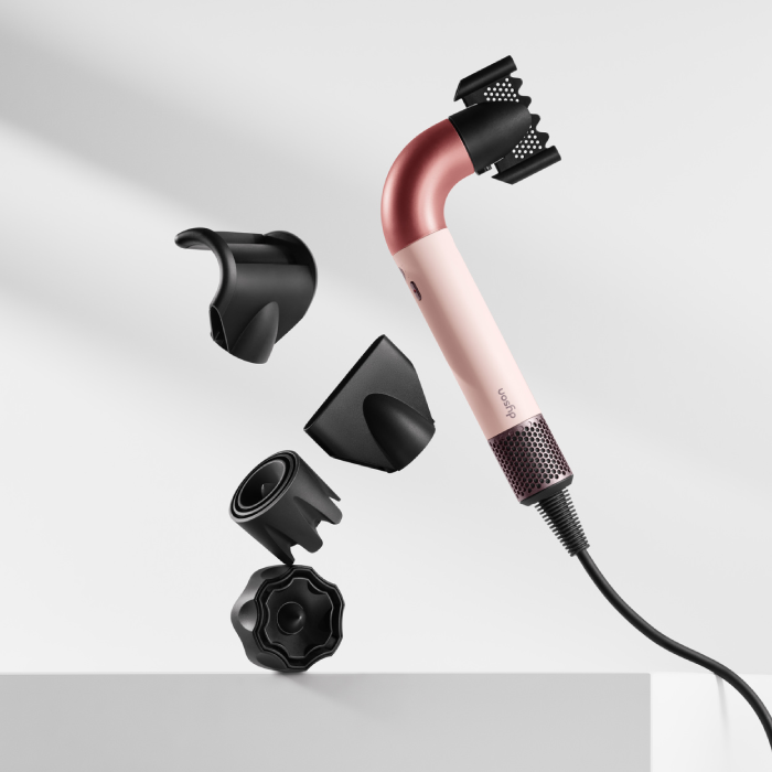 Like other Dyson hair dryers, this model includes five styling attachments and is available in two colours: Ceramic Pink with Rose Gold accents and the elegant Jasper Plum (online exclusive).