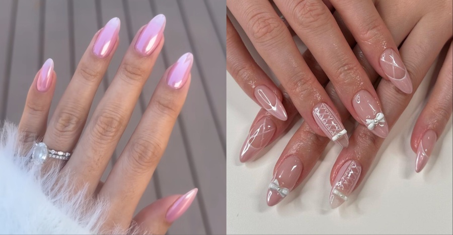 Love the coquette aesthetic? You’ll want to try out these nails in a classic light pink shade, with silver and pearl accents.