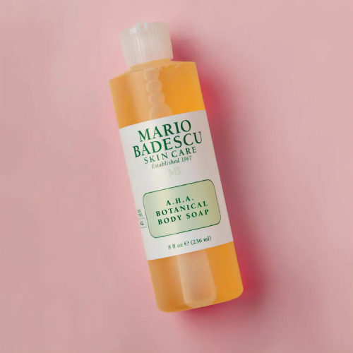 The A.H.A. Botanical Body Soap from Mario Badescu contains fruit enzymes that gently exfoliate the skin and remove dead skin cells and dirt without drying out the skin.
