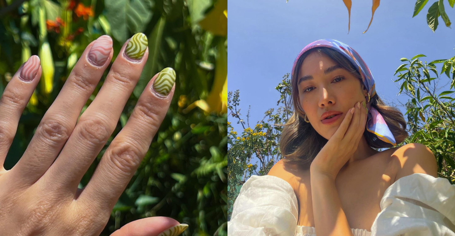 Swirls are for summer, and this playful colour combination of pastel pink and green just turns the happy summer vibes up a notch. The swirly lines add a three-dimensional effect to the nails, so you don’t have to have long talons to rock this look.